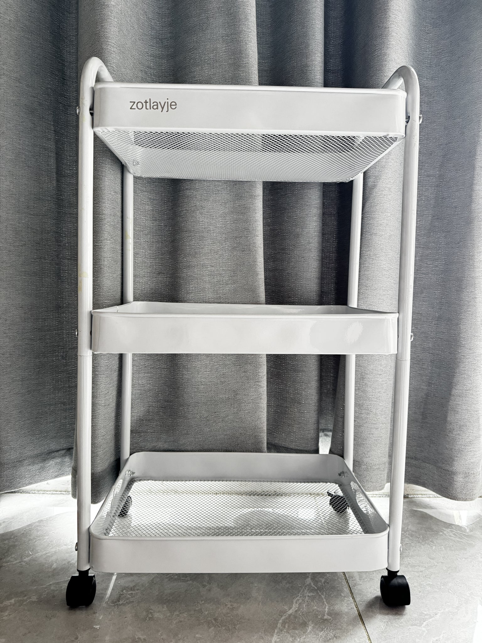 - 【3-Tier Shelf with Raised Edge】 Each shelf spaces approximately 12” apart, offering ample storage space for multiple items, such as shampoo, toiletries, towels, spice bottles and food, etc. What's more, the protective bars on each shelf are effective to prevent items from falling down.